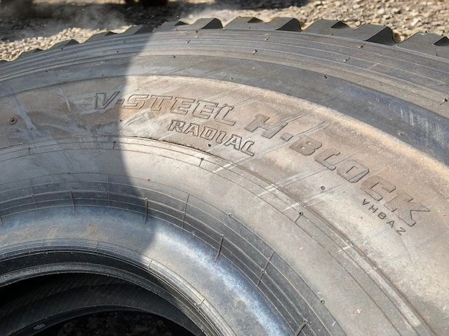 Bridgestone 18.00R25 OTR pair, never used, stored indoors. Heavy-duty tubeless, R-2 tread, perfect for loaders/dozers.