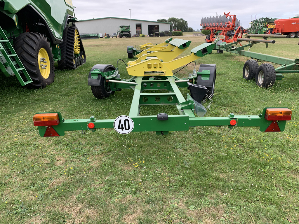 2 axle with 4 wheel steering header trolley for hd45x, overrun brake with reversing mechanism, hand brake, knife bar supports, axle pivot steering and brakes, lighting, 10.0/75-15.3 18pr tyres