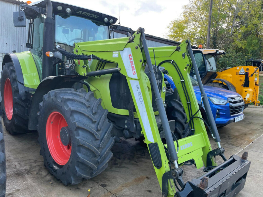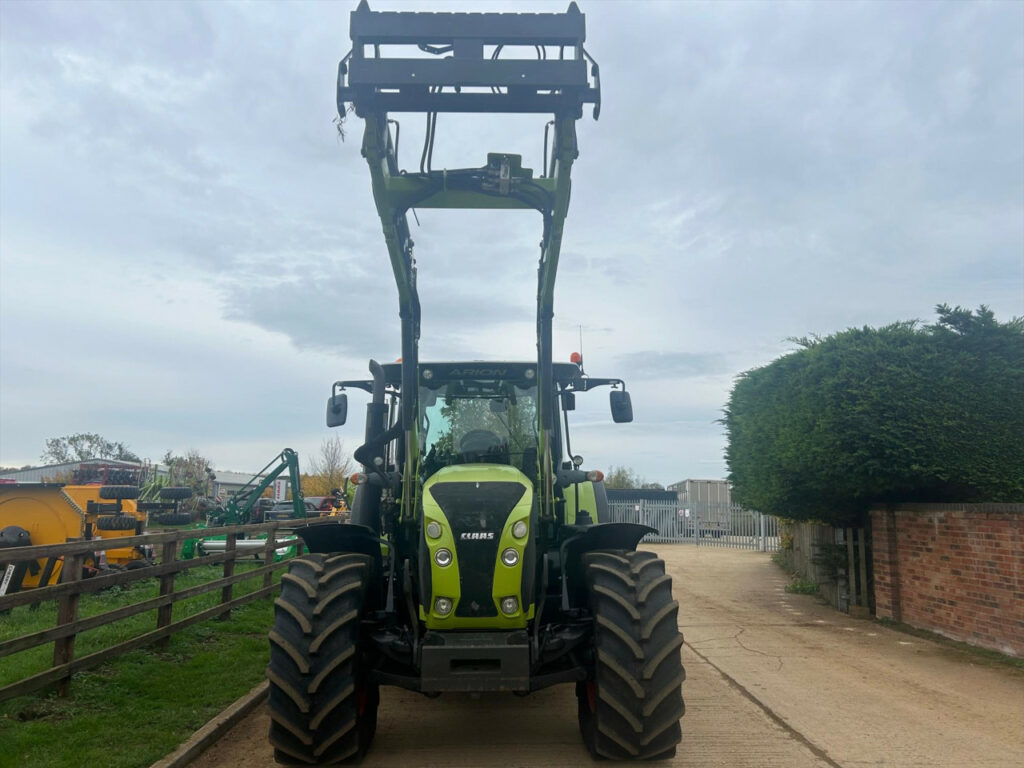 Claas Arion 650CIS 50kph, 184hp, no boost, no AdBlue, mechanical spool valves c/w Claas FL120C loader currently with 3rd service, mechanical levelling, sofdt ride, Pin & Cone headstock (can be changed, please enquire), 540/65 R28 fixed rim (nearly new 95%), 650/65 R38 fixed rim (nearly new 95%), 50 kph 24/24 gear HEXASHIFT with HEXACTIV auto gearing, ISOBUS-enabled rear, Lower link stabilisers automatic both sides, Pick-up hitch hydraulic push out, Air brakes, Load-sensing hydraulics 110 l/min, 3 spool valves mechanical (CIS), PROACTIV suspended front axle with multi-disc brakes, PTO 540/540 ECO + 1000/1000 ECO rpm, Front mudguards pivoting 540 mm, 184 hp max. output, ECE R 120, Battery isolator switch, Fuel tank 280 l + additional 50 l, 4-pillar cab with 4-point suspension, Additional interface sockets, 4x halogen road lights, 2x halogen work lights bonnet, 4x roof front and 2x roof rear, Driver’s seat air suspension and swiveling, Passenger seat with safety belt, Air conditioning, 2x rotating beacons, Very good condition tractor, well looked after