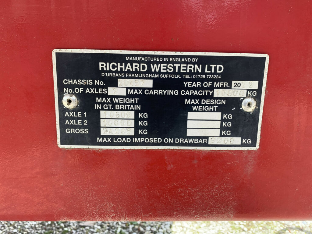 Richard Western SF18HS Plus 18T Trailed, year 2022, Air Brakes, Hydraulic Rear Door, Sprung Drawar, BKT 560/65R22.5 tyres, Grain Hatch, Side Ladder, Front Window.