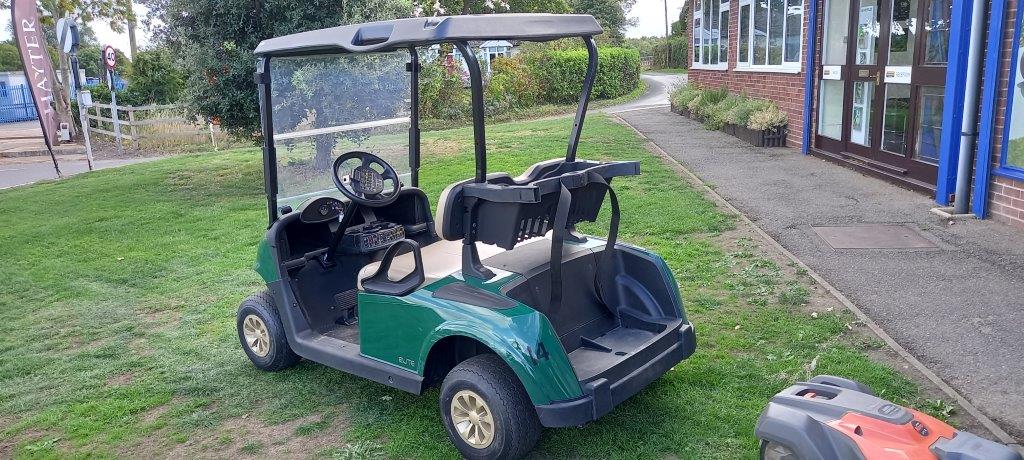 FORREST GREEN 48 VOLT DC LITHIUM ION, ON BOARD CHARGER, FOLD DOWN WINDSHIELD, BLACK SUNTOP, STONE BEIGE SEATS, TWIN BAG CARRIER, SWEATER BASKET.