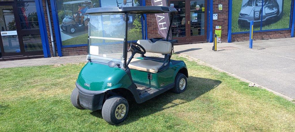 FORREST GREEN 48 VOLT DC LITHIUM ION, ON BOARD CHARGER, FOLD DOWN WINDSHIELD, STONE BEIGE SUNTOP STONE BEIGE SEATS, TWIN BAG CARRIER, SWEATER BASKET.