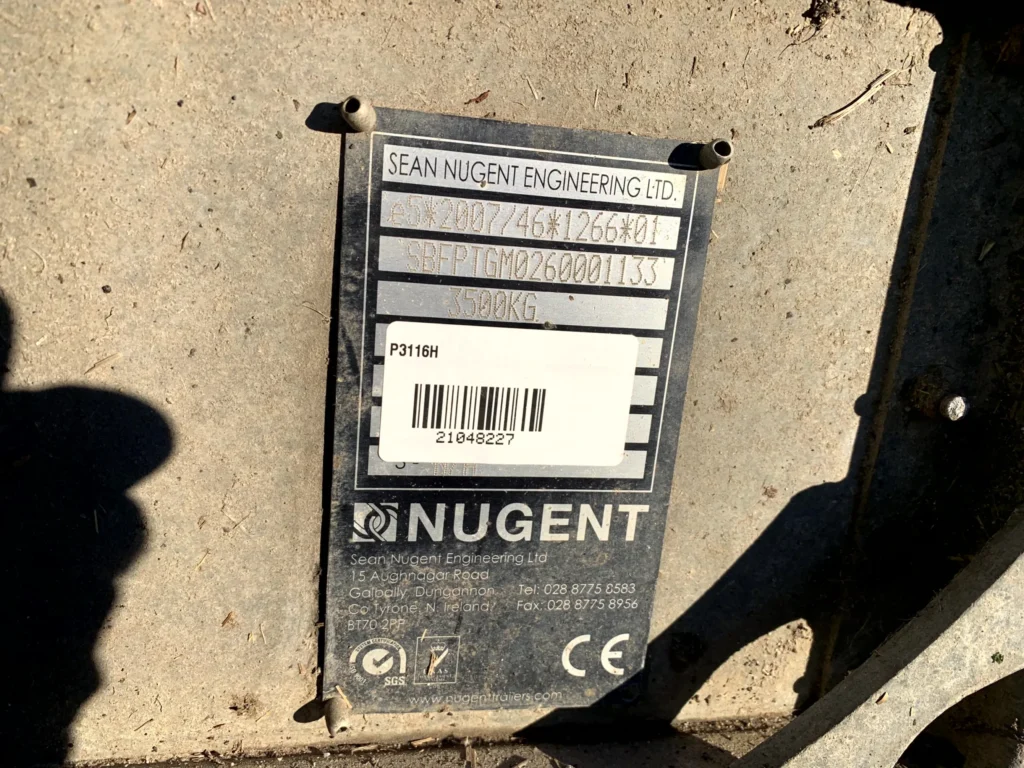 Nugent P3116H Plant trailer, year 2021, 10ft 3″ x 5ft 3″ 3500kg plant trailer c/w closed in sides & two pairs of lashing points, Toolbox, Reinforced Rear Ramp Door.