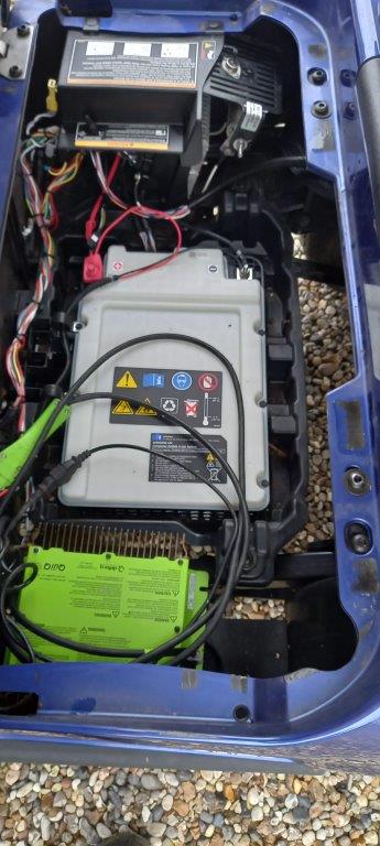 ELECTRIC BLUE 48 VOLT DC 2ND GEN LITHIUM ION, ON BOARD CHARGER, FOLD DOWN WINDSHIELD, BLACK SUNTOP, GREY PREMIUM SEATS WITH HIGH BACK, TWIN BAG CARRIER, SWEATER BASKET.