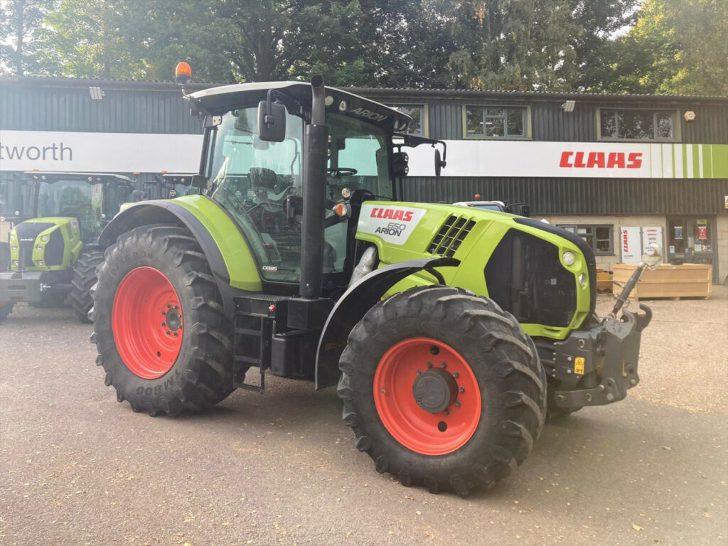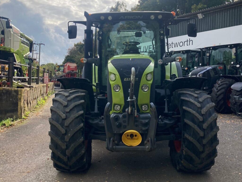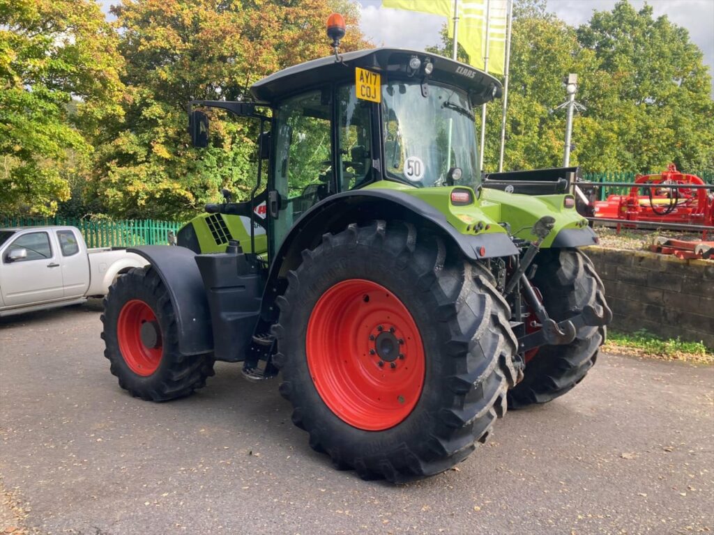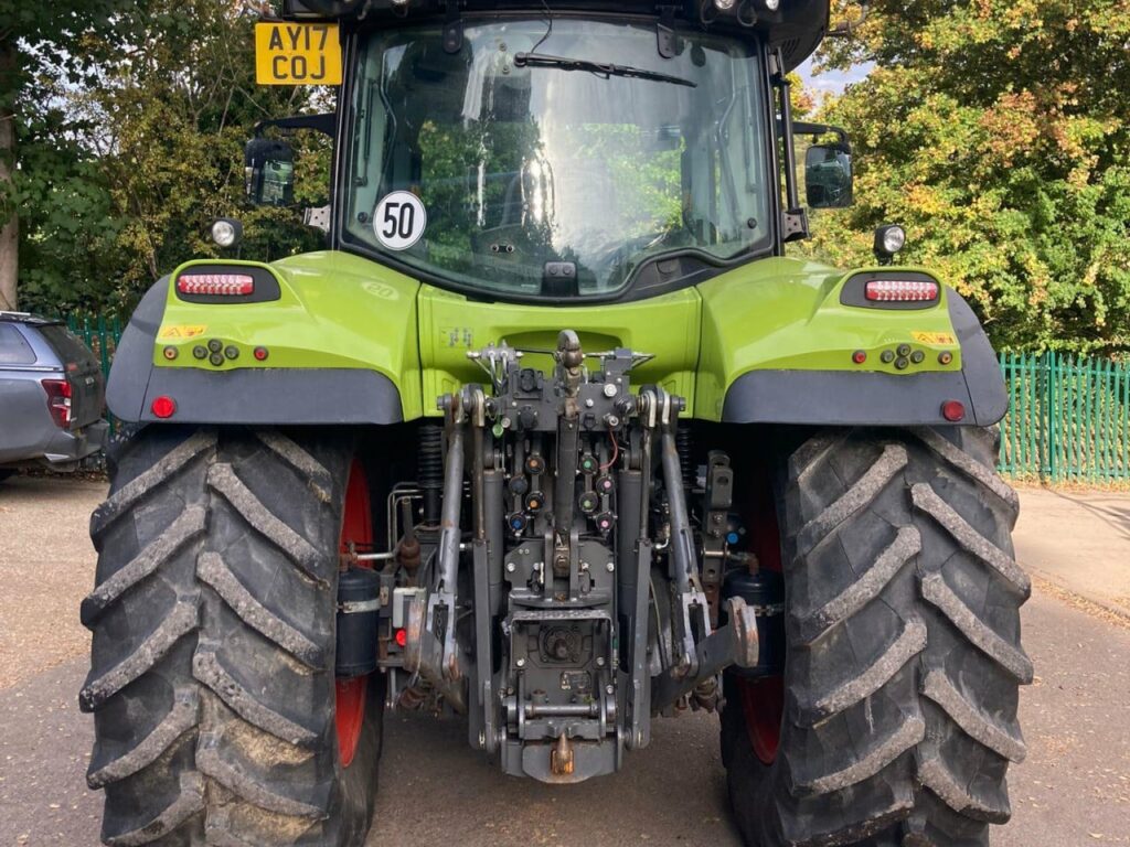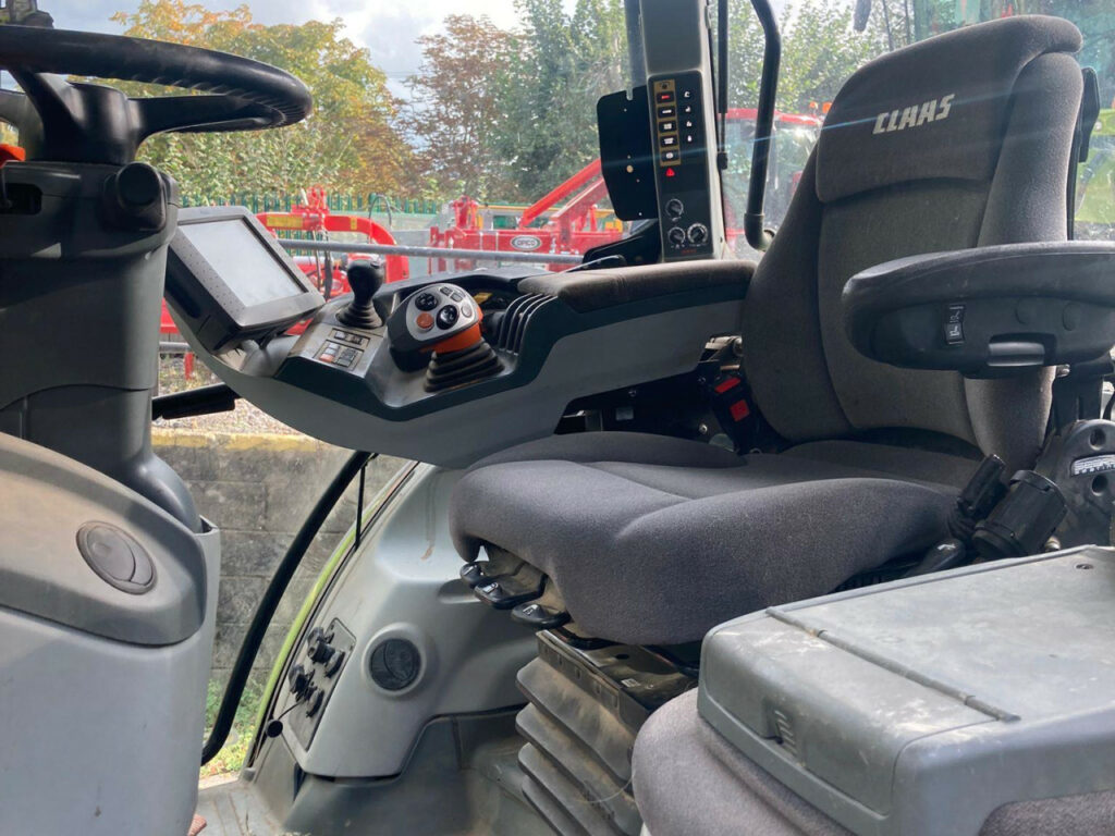 CEBIS spec, 540/65 R28 Trelleborg fronts, 650/65 R38 Trelleborg rears, External front linkage control, CLAAS 3.0 t Front linkage, CLAAS Front PTO, 24/24 gear HEXASHIFT with HEXACTIV plus CSM, ISOBUS equipment, Pick up hitch hydraulic push out, Load sensing 110 lire/min, Rear 4 spool valves electrohydraulic, 50 kph, PROACTIV suspended front axle with multi-disc brakes, PTO 540/540 ECO +1000/1000ECO, 4-point cab suspension, Additional interface sockets in cab, 2 x high level headlights on A-Pillar, 4 x halogen road lights 2 x halogen work lights bonnet 4 x roof front and 4 x roof rear 2 x turn indicators holder 2 x rear mudguard lights, Drivers seat air suspension and swiveling, Air conditioning, 2 x beacons, Tractor in excellent condition