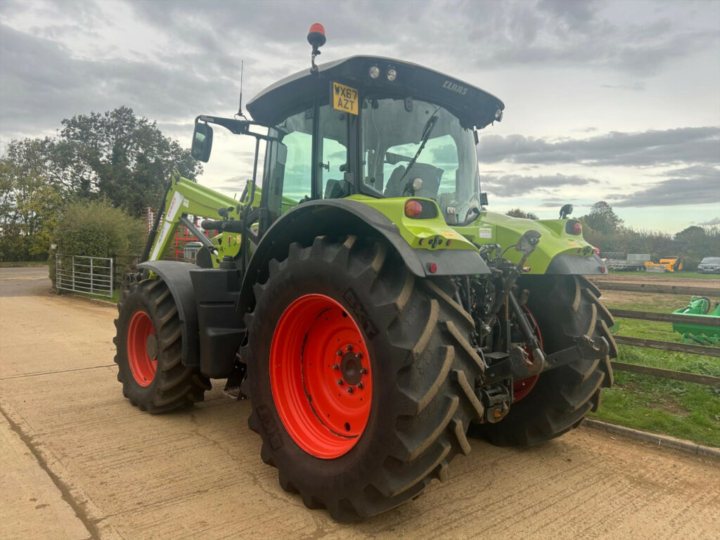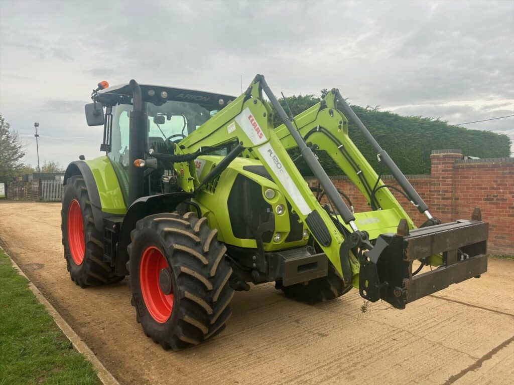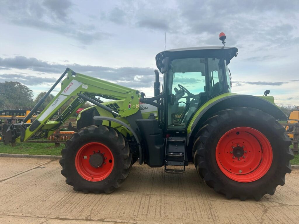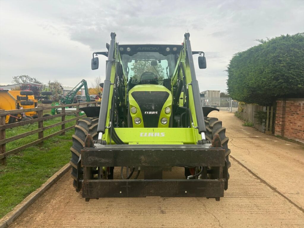 Claas Arion 650CIS 50kph, 184hp, no boost, no AdBlue, mechanical spool valves c/w Claas FL120C loader currently with 3rd service, mechanical levelling, sofdt ride, Pin & Cone headstock (can be changed, please enquire), 540/65 R28 fixed rim (nearly new 95%), 650/65 R38 fixed rim (nearly new 95%), 50 kph 24/24 gear HEXASHIFT with HEXACTIV auto gearing, ISOBUS-enabled rear, Lower link stabilisers automatic both sides, Pick-up hitch hydraulic push out, Air brakes, Load-sensing hydraulics 110 l/min, 3 spool valves mechanical (CIS), PROACTIV suspended front axle with multi-disc brakes, PTO 540/540 ECO + 1000/1000 ECO rpm, Front mudguards pivoting 540 mm, 184 hp max. output, ECE R 120, Battery isolator switch, Fuel tank 280 l + additional 50 l, 4-pillar cab with 4-point suspension, Additional interface sockets, 4x halogen road lights, 2x halogen work lights bonnet, 4x roof front and 2x roof rear, Driver’s seat air suspension and swiveling, Passenger seat with safety belt, Air conditioning, 2x rotating beacons, Very good condition tractor, well looked after