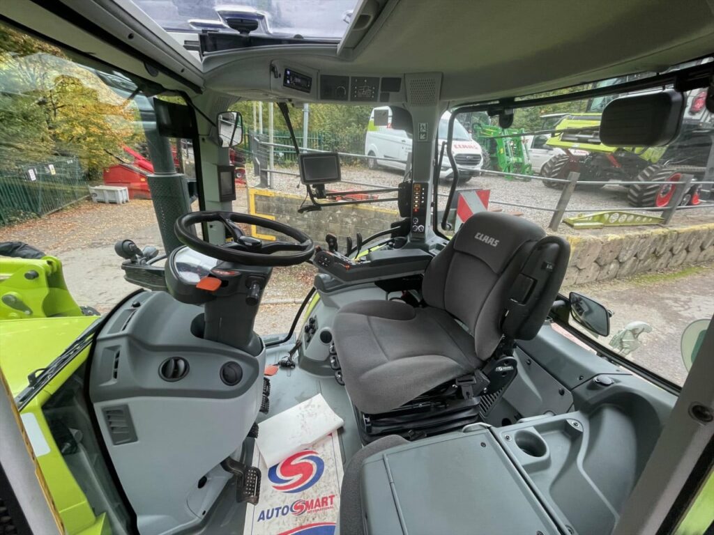 480/65 R28 Firestone Performer 65 / fixed rim, 600/65 R38 standard tyres / fixed rim, Front weight carrier 110 kg, Front loader bracket, Side rails for engine and transmission for front loader, CIS, 50kph 24/24 gear HEXASHIFT, HEXACTIV auto gear shifting, ELECTROPILOT with reversing function, Lower link stabilisers automatic, Pick-up hitch hydraulic push out, Air brakes, Load-sensing hydraulics 110 l/min, 5 spool valves: 3x mechanical and 2x electrohydraulic for loader joystick, Power Beyond load-sensing connections without flat face couplers, PROACTIV front axle with wet multi-disc brakes, PTO 540/540 ECO + 1000/1000 ECO rpm, Front mudguards pivoting, 165 hp max. ECE R 120, Battery master switch electronic, Fuel tank 370 l, 5-pillar cab with 4-point suspension, Transparent sunroof, Wide-angle mirrors, Terminal bar, Additional interface sockets, 4x halogen road lights, 2x halogen work lights bonnet, 4x roof front and 2x roof rear, 2x turn indicator holder, 2x rear mudguards, Comfort seat air-suspension, Passenger seat with safety belt, Air conditioning, 2x LED rotating beacons folding, Claas FL120C front loader, EURO headstock fitted2021 loader year 3rd service on loader, Low use as a back up loader, 1 owner driver since new excellent condition been serviced and looked after by OLIVERS since new, MAXICARE Warranty until 07/04/2026 or 4,000 hours