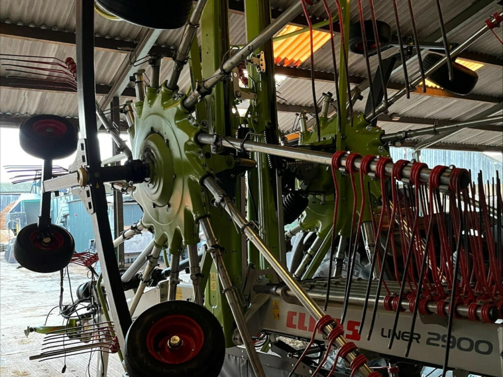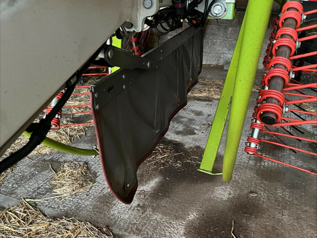 Dual-rotor central swather, 8.2-9m raking width, Individual rotor lift, Comes with control box, Centre curtain, 6-wheel under carriage, PROFIX removable tine arms, Rear steering, in-cab control, Machine in excellent condition