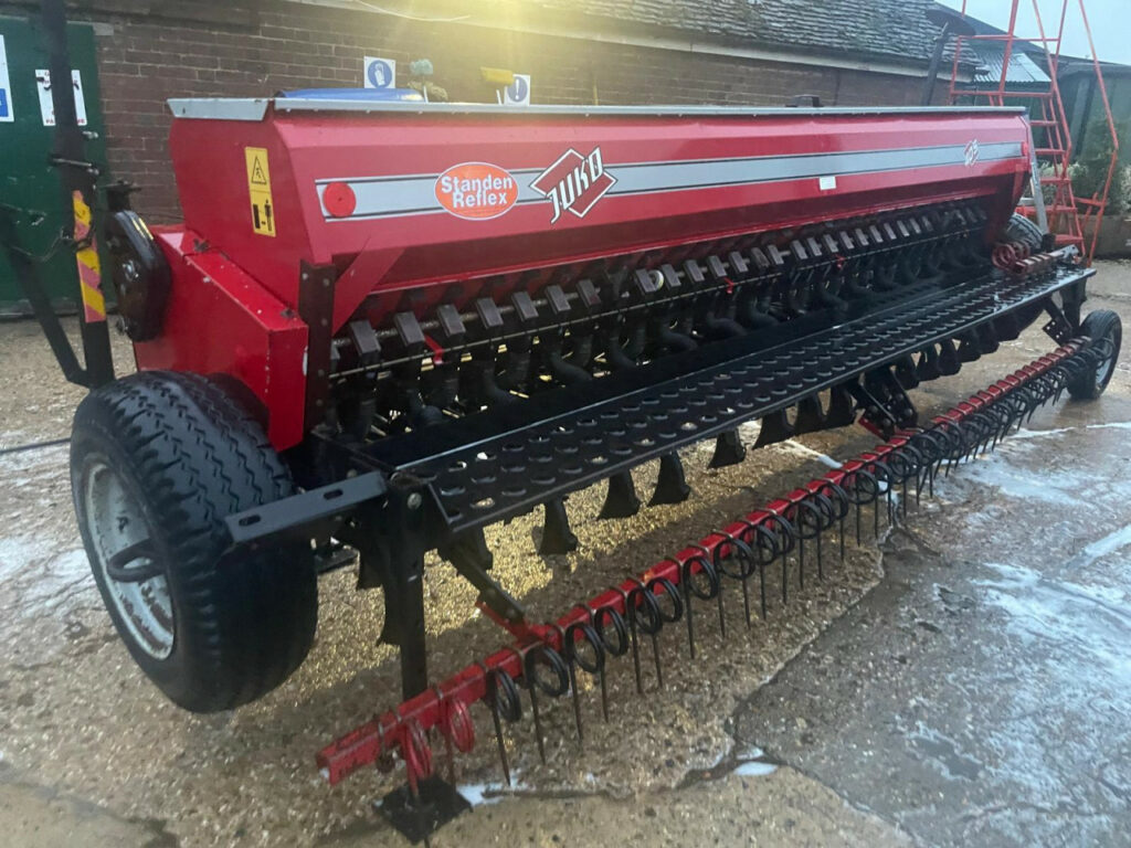 Juko 40S Box Drill, Working Width 4.00m, End Tow Kit, Suffolk Coulters, Rear following harrow, Bout Markers, top link switch, Reflex TLC 8060 control box, Operator manual and parts book, Nice simple little drill