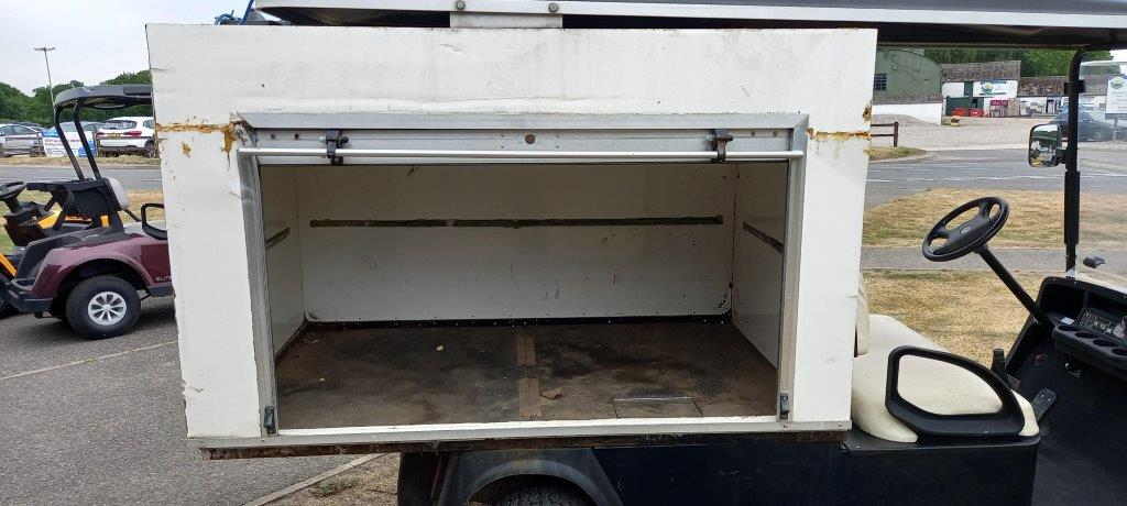 UTILITY + VAN BOX 13.5 HP 4 STROKE PETROL ENGINE, HYDRAULIC SHOCK ABSORBERS, 2 WD, FRONT WINSCREEN WITH ROOF CANOPY, HYDRAULIC BRAKES WITH INDEPENDENT HAND BRAKE, FITTED WITH CUSTOM MADE REAR VAN BOX C/W ROLLER SHUTTER SIDE DOOR, 400kg TOTAL CAPACITY.