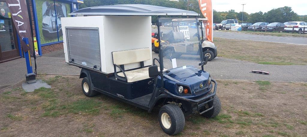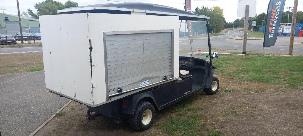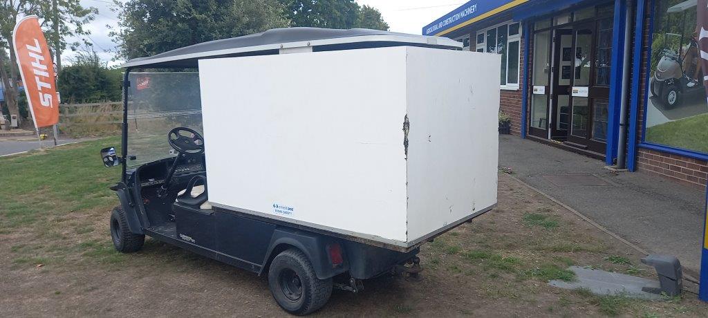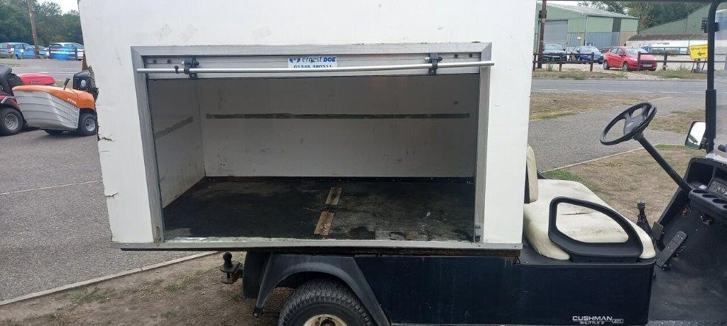UTILITY +VAN BOX 13.5 HP 4 STROKE PETROL ENGINE, HYDRAULIC SHOCK ABSORBERS, 2 WD, FRONT WINSCREEN WITH ROOF CANOPY, HYDRAULIC BRAKES WITH INDEPENDENT HAND BRAKE, FITTED WITH CUSTOM MADE REAR VAN BOX C/W ROLLER SHUTTER SIDE DOOR, 400kg TOTAL CAPACITY.
