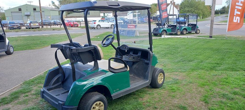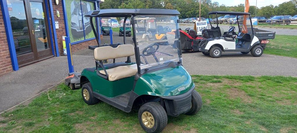 FORREST GREEN 48 VOLT DC LITHIUM ION, ON BOARD CHARGER, FOLD DOWN WINDSHIELD, BLACK SUNTOP, STONE BEIGE SEATS, TWIN BAG CARRIER, SWEATER BASKET.