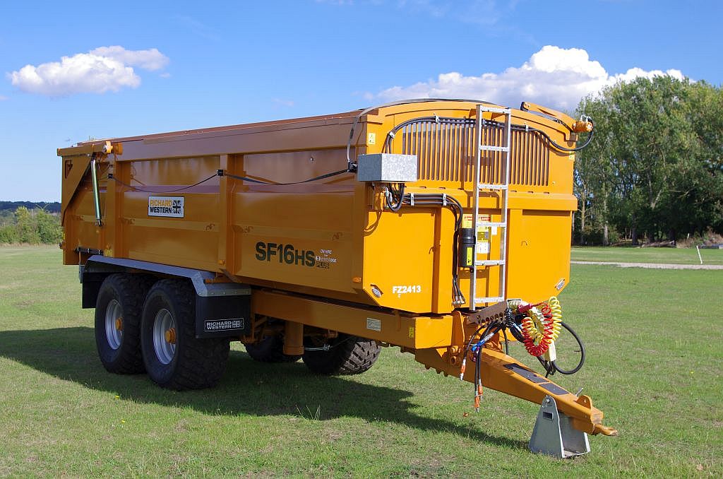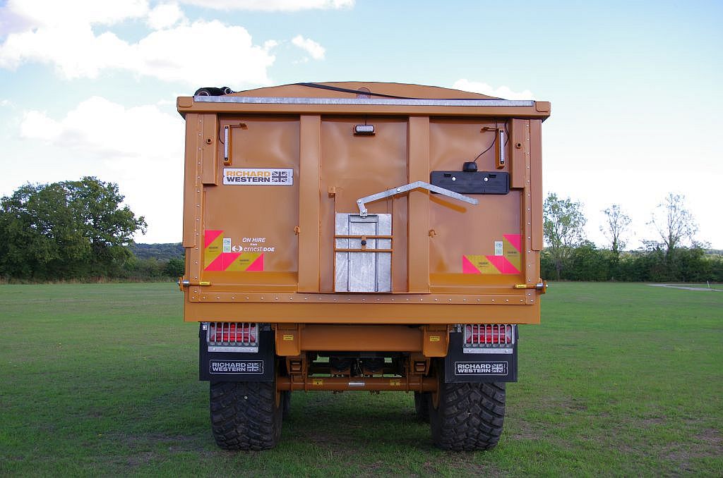Ex Hire Trailer Sprung Drawbar, Flashing Beacon, Arched Front w/ Perspex Window, High Rear Tail Lights, Grain Chute, Hyd Tailboard, Body Mounted Mud Guards & Mud Flaps – Galvanized, Air & Hyd Brakes w/ Load Sensing Valve for Air Brakes, Hyd Load Sensing, 560/60R – 22.5 BKT, Swivel Eye, Hyd R/O Sheet -Side to Side