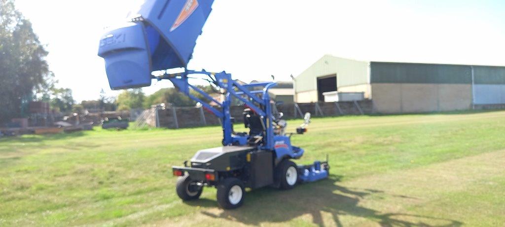 OUT FRONT ROTARY 48 HP 4 CYLINDER DIESEL ENGINE, WITH AUTO REVERSING COOLING FAN, 4 WHEEL DRIVE WITH AUTO CRUISE, POWER STEERING WITH TILT AND TELESCOPIC STEERING WHEEL, 1.52M FRONT MOUNTED REAR DISCHARGE ROTARY CUTTING DECK, 1300L HIGH TIP COLLECTOR.
