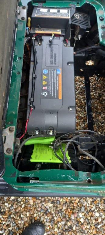 FORREST GREEN 48 VOLT DC LITHIUM ION, ON BOARD CHARGER, FOLD DOWN WINDSHIELD, STONE BEIGE SUNTOP STONE BEIGE SEATS, TWIN BAG CARRIER, SWEATER BASKET.