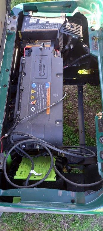 FORREST GREEN 48 VOLT DC LITHIUM ION, ON BOARD CHARGER, FOLD DOWN WINDSHIELD, BLACK SUNTOP, STONE BEIGE SEATS, TWIN BAG CARRIER, SWEATER BASKET.