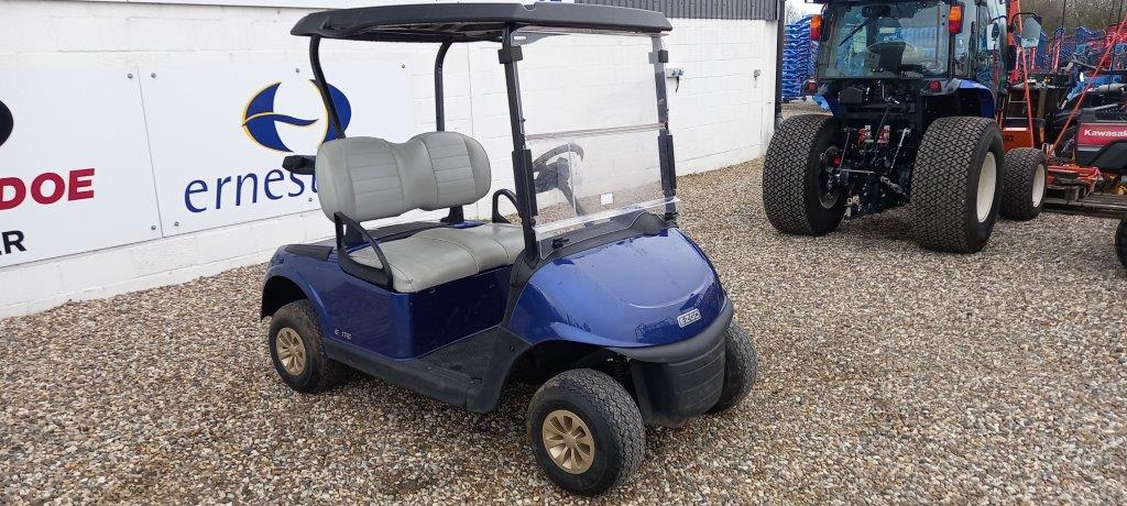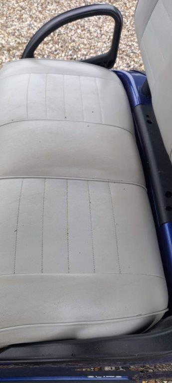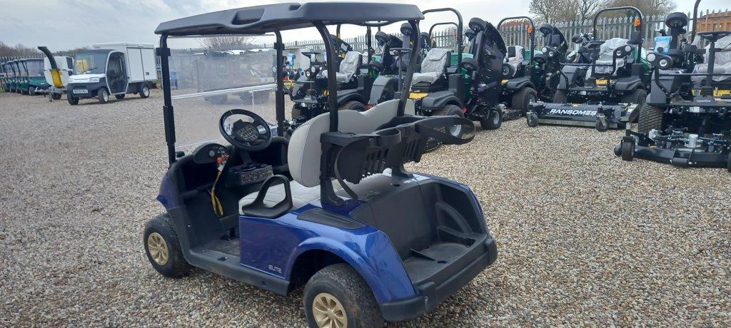 ELECTRIC BLUE 48 VOLT DC 2ND GEN LITHIUM ION, ON BOARD CHARGER, FOLD DOWN WINDSHIELD, BLACK SUNTOP, GREY PREMIUM SEATS WITH HIGH BACK, TWIN BAG CARRIER, SWEATER BASKET.