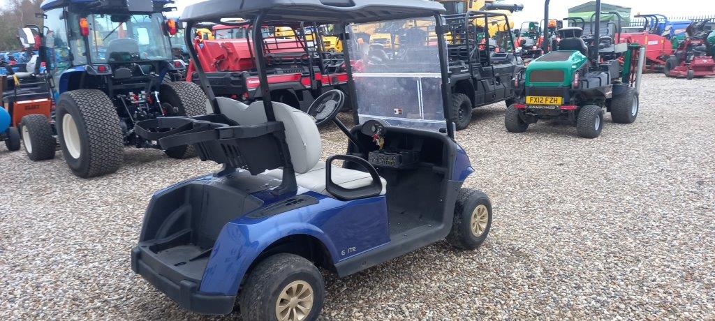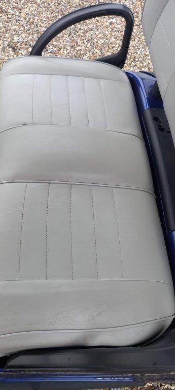 ELECTRIC BLUE 48 VOLT DC 2ND GEN LITHIUM ION, ON BOARD CHARGER, FOLD DOWN WINDSHIELD, BLACK SUNTOP, GREY PREMIUM SEATS WITH HIGH BACK, TWIN BAG CARRIER, SWEATER BASKET.