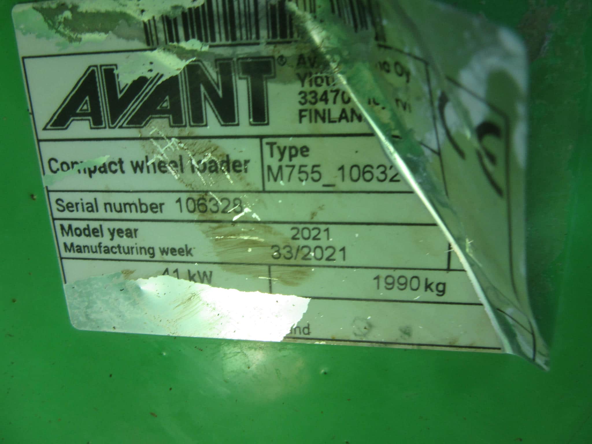 2021 AVANT 755I LOADER, TELESCOPIC BOOM WITH SELF LEVELLING AND SMOOTH DRIVE, HYDROSTATIC 4WD, TOW BAR, 56HP KOHLER ENGINE, TIPPING LOAD 1400KG, 180KG REAR SIDE WEIGHTS, 1096 HOURS.