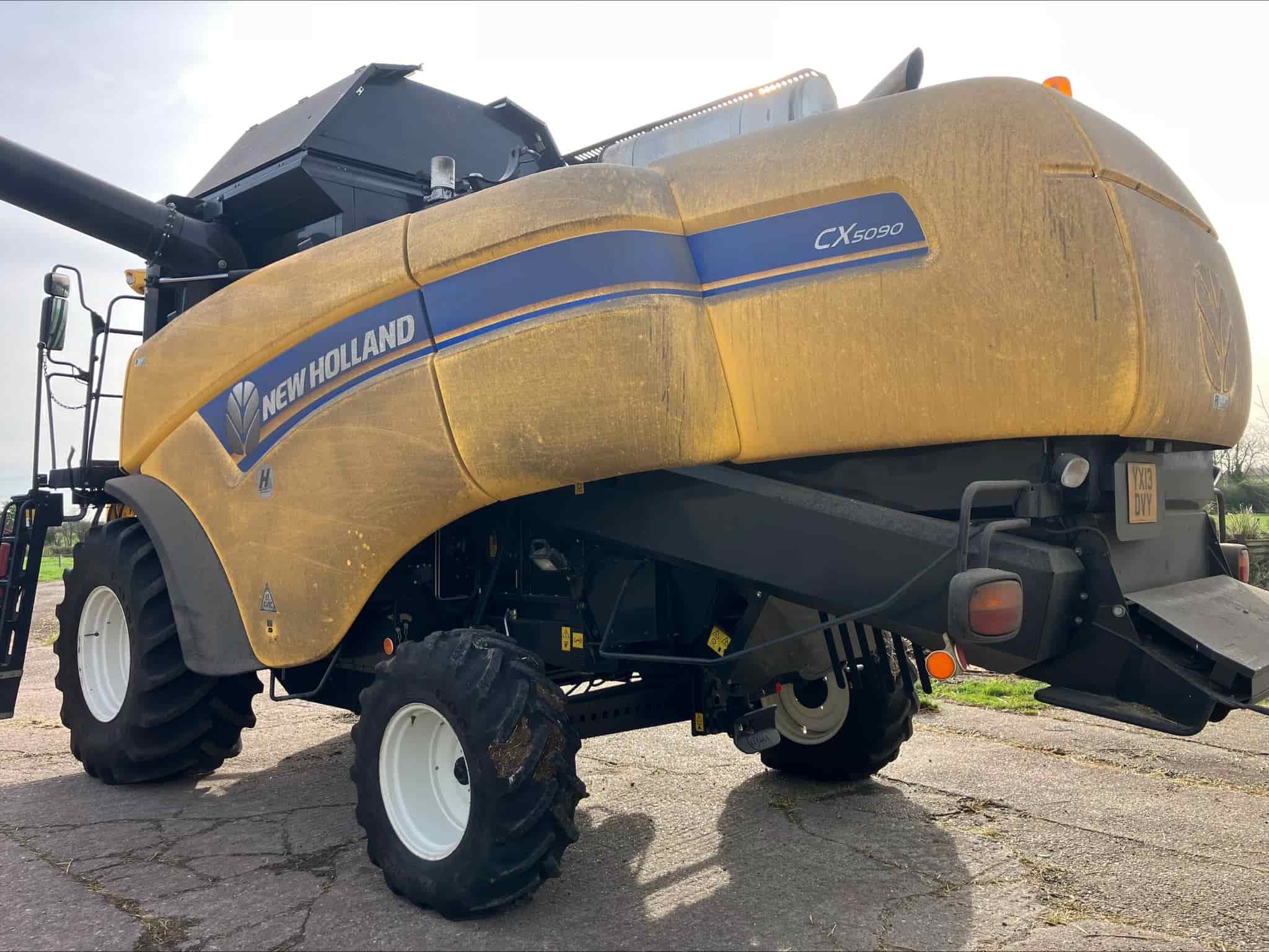 2013, New Holland CX 5090, 1575 engine hours, 1250 drum hours, air seat, 30K, 2WD, A/C, smart sieve, chopper and chaff spreader, air conditioning, 800/65R32 front tyres, 460/70R24 rears, 20ft Varifeed header, 1 side knife, single axle header trailer, Road Registered: 10/06/2013.