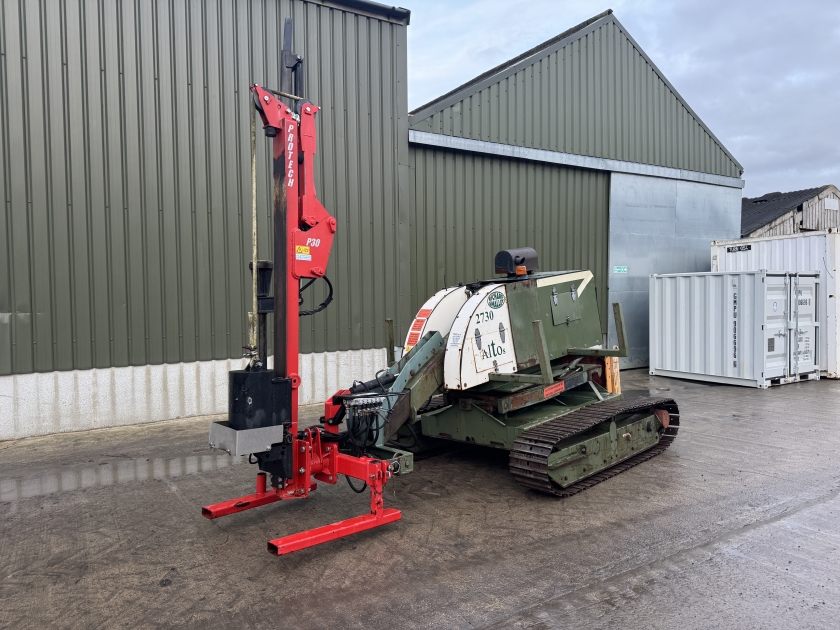 Protech P30 Post Knocker, Metal Tracks, Remote Drive, Side and Forward Tilt, Rock Spike, Rotating, Tilting, Perkins 4 Cylinder Engine, Ideal for Hilly or Uneven Ground. www.jrfirby.co.uk