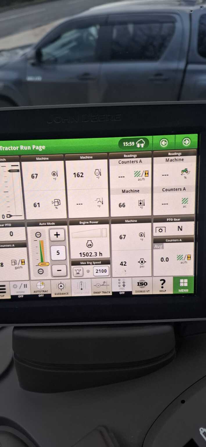Rear Tyres: 520/70R38 60% remaining