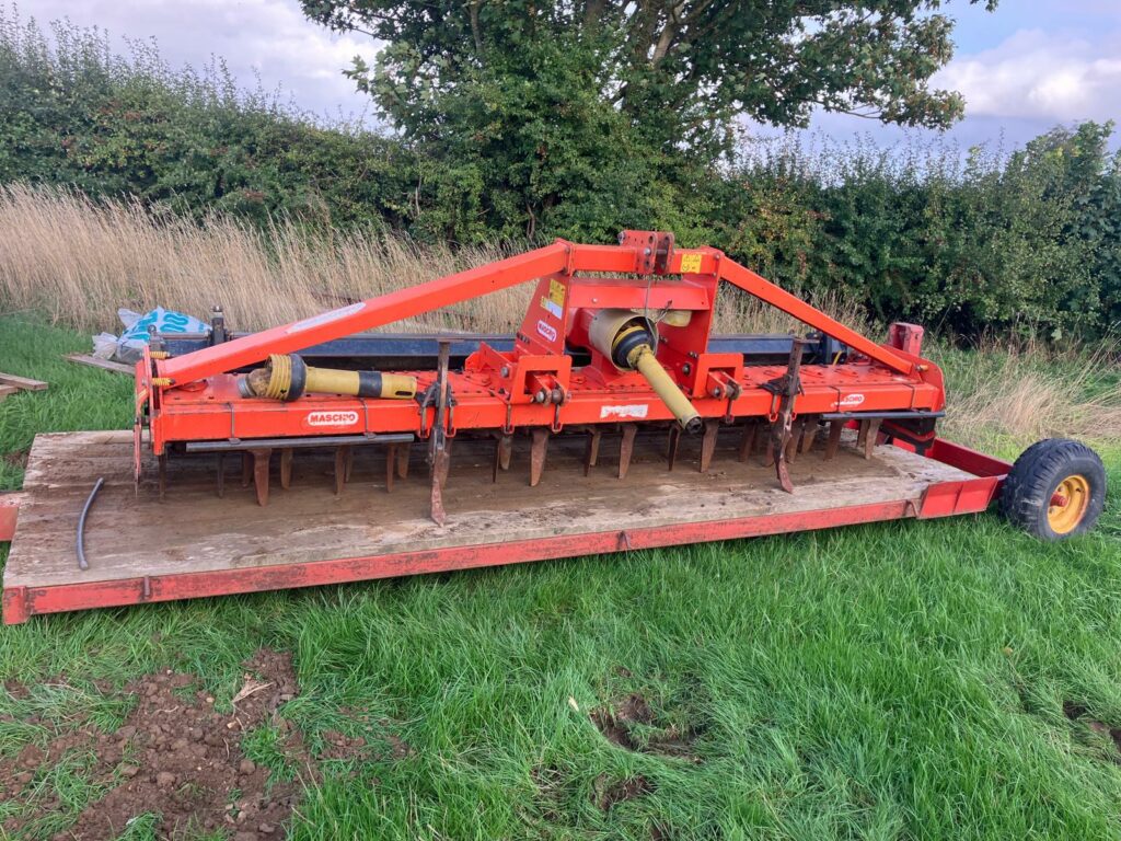 One- 2006 Maschio DM Rapido 4000 4m Power Harrow c/w rear roller and low loading trailer. In very good condition
