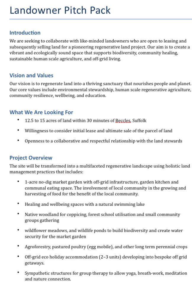 looking for a 12.5 – 15 Acre parcel of land to start a regenerative no dig market garden and pastured poultry including a diversification and biodiversity project. With opportunity to lease before purchasing. Near Beccles Suffolk. Details available
