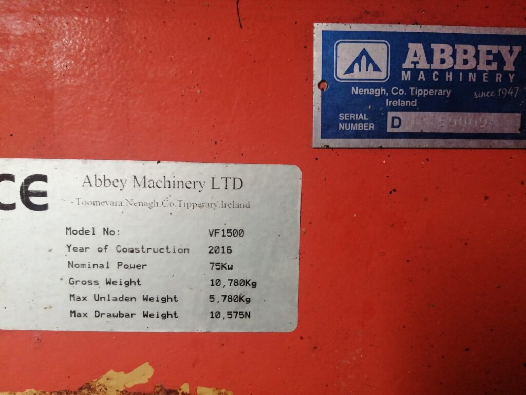 Abbey 15 cubic metres Vf1500 Feeder,Trailed. Twin vertical auger,Single axle,435/50 R19.5,Weighing system. Year: 2016.