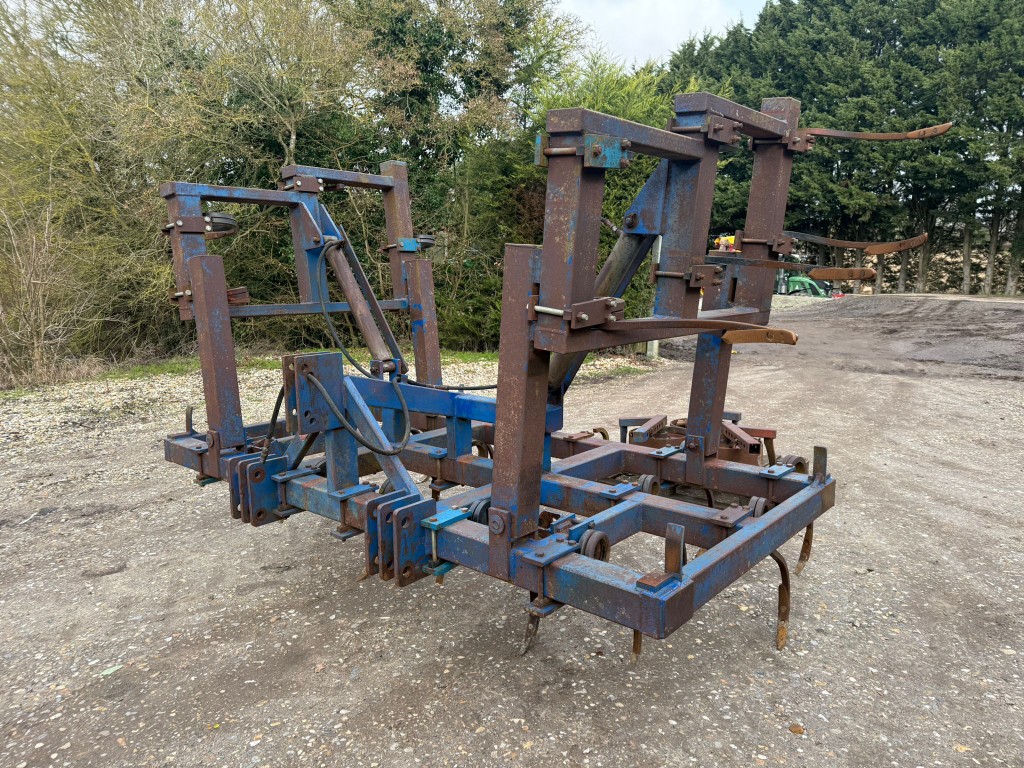 Blench 4.8 metre hydraulic folding pigtail springtine cultivator c/w 2 x removable depth wheels (and 1 spare).