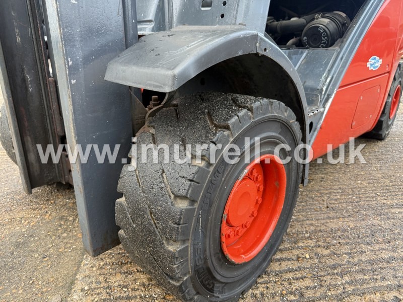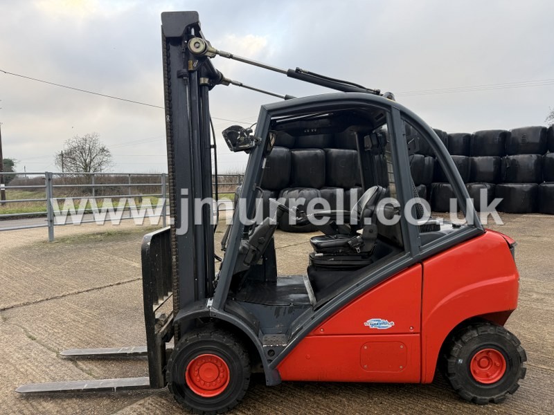 Linde H25D Counterbalance Fork Lift, 22kmph Hydrostatic transmission, Volkswagen 44HP Diesel engine, 2.5 Tonne lift, Duplex two stage mast with hydraulic side shift, 4.1m lift height, ROPS Safety cab with front & rear windscreen, Digital dashboard display, Front & Rear work lights, Reversing beeper, Flashing beacon, Excellent tyres.