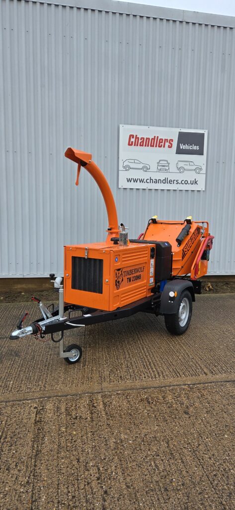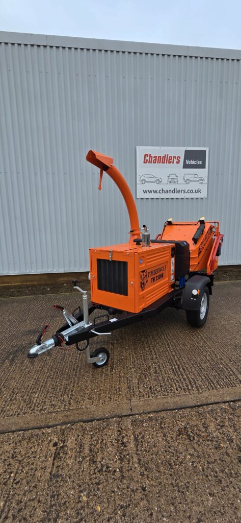 TIMBERWOLF TW230 HBD WOOD CHIPPER, 25HP DIESEL ENGINE,6’TWIN. HYDRAULIC FEED ROLLERS, 750KG ROAD TOW CHASSIS..