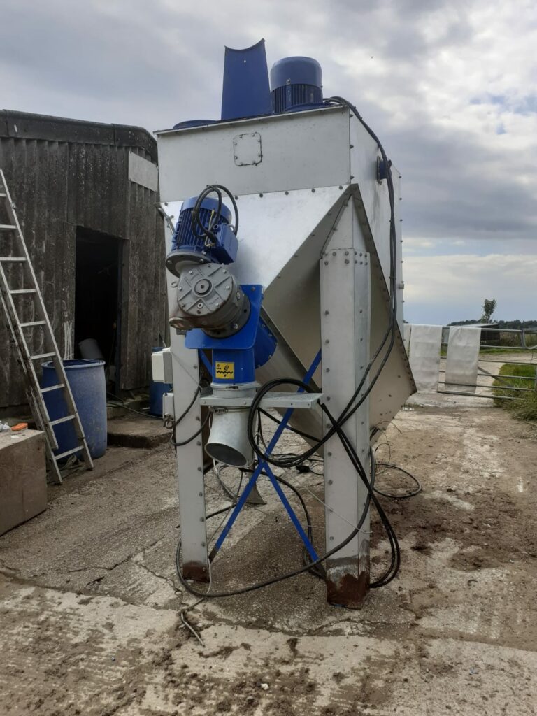 One ton mixer and hammer mill, weighing hopper and loading / unloading augers.