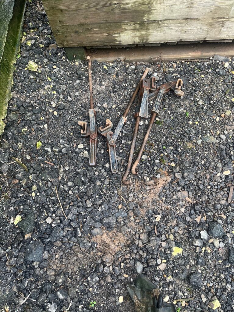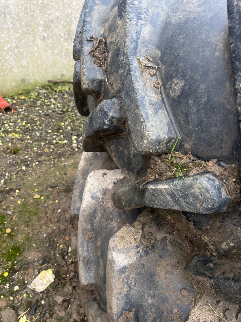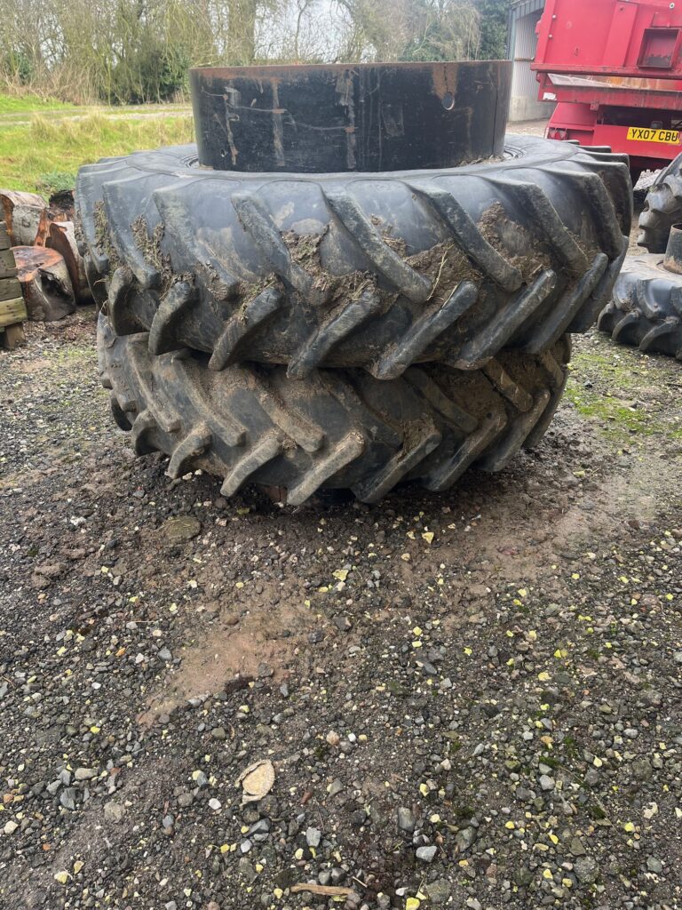set of 18.4/38 Dual Wheels. 95% tred like new with 8 clamps in total.