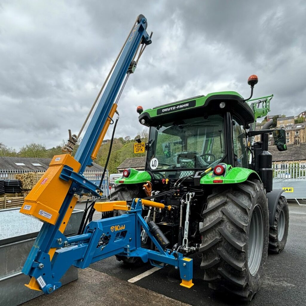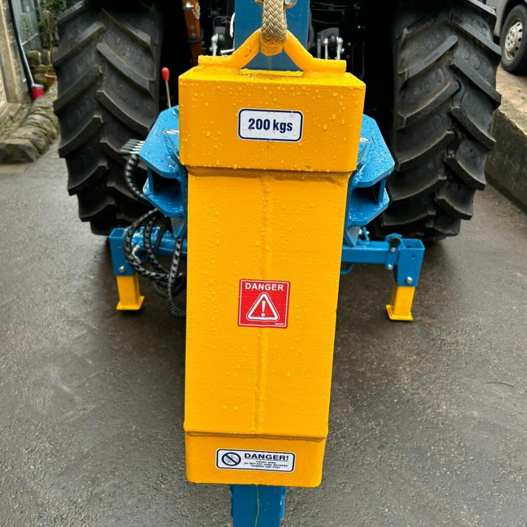 Telescopic boom action, 3 meter mast, 200Kg tapered weight, hydraulic top link, hydraulic post retaining caliper.