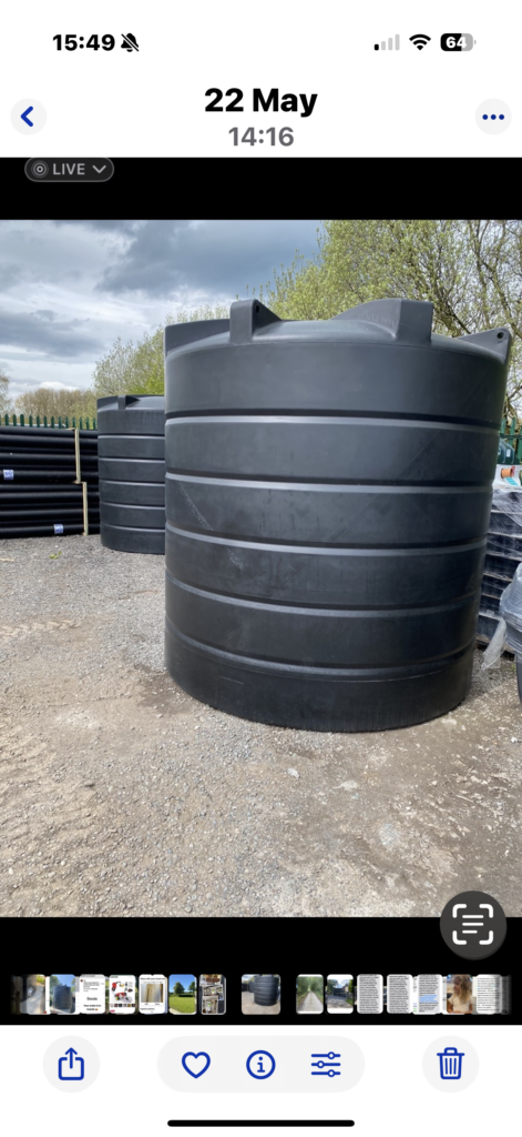 10,000 LTR POTABLE WATER TANKS WITH 2” BSP MALE OUTLET . 2.5 DIA 2.6 TALL.