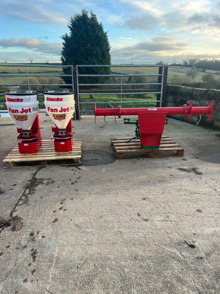Stocks Fan Jet Duo Twin Slug Pelleters on Stocks Mounting Frame. Control Box and Hydraulic Front Linkage Frame come off a Househam AR4000. Year 2015, in good working order.